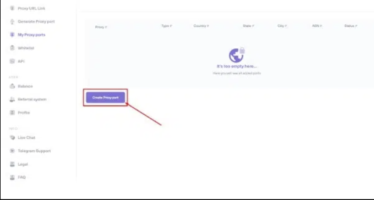 Here, you will find all your proxy ports. It is also possible to create new ones here.