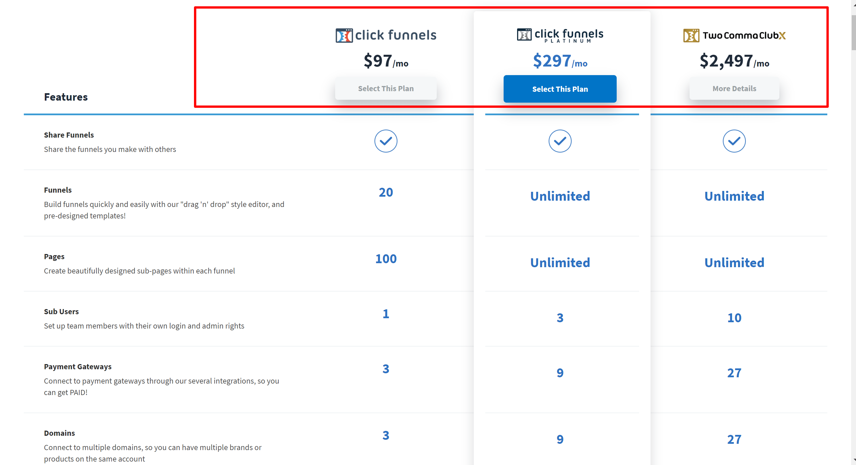 This feature, however, is only accessible on the ClickFunnels Platinum Plan, which costs a whopping $297/month, and the TwoComma Club plan, which costs $2,497/month!
