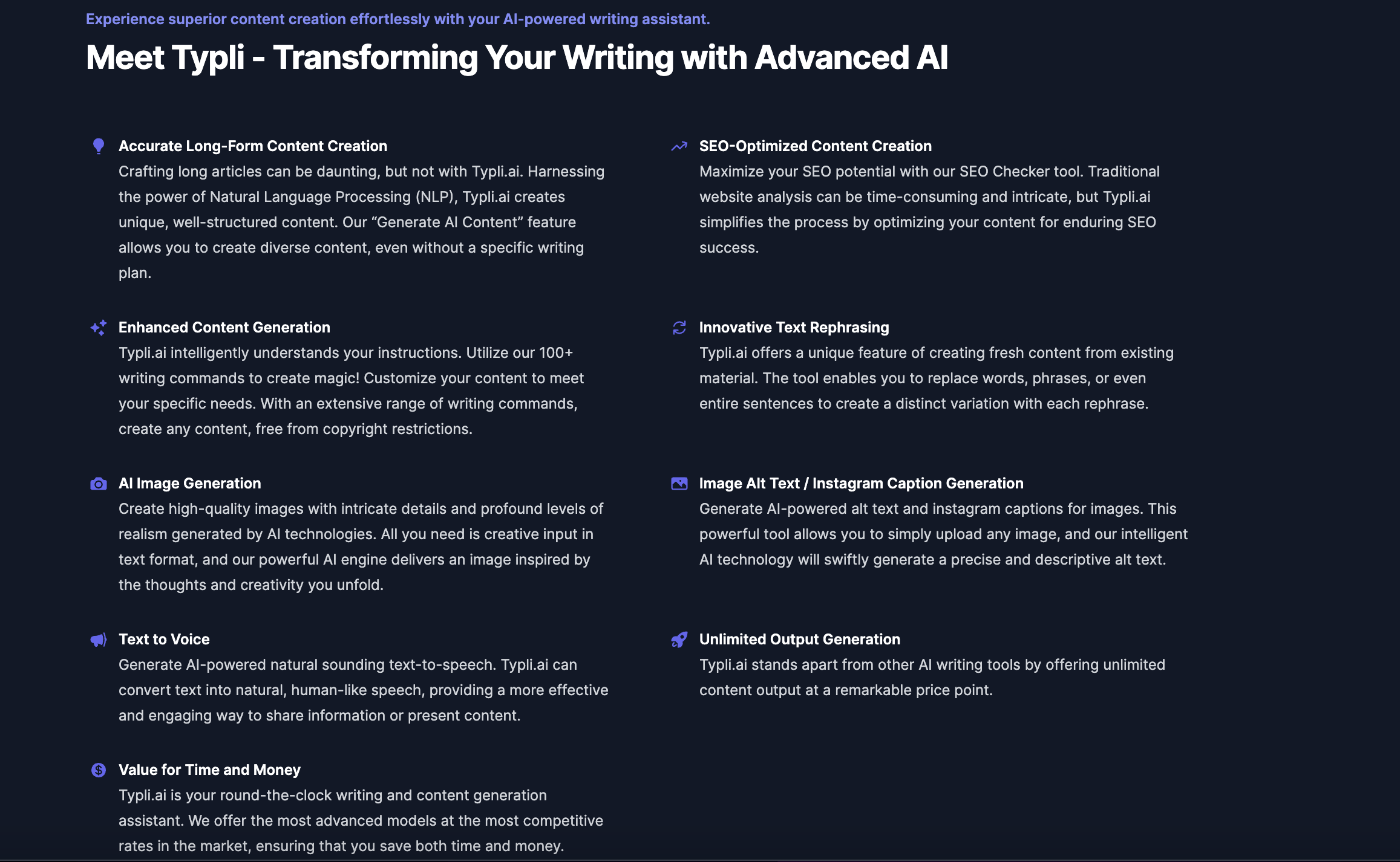 Typli.ai is definitely worth considering for those aiming to streamline their content creation process and boost their online presence.